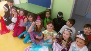 Der ein oder andere war an diesem Tag sicher verwundert, wer in unserer Schule so ein- und ausgeht. Cowboys, Prinzessinnen, Polizisten, Feen, Indianer, Vampire…..und nicht zuletzt sogar Dieter B. und Heidi K. Diese beiden nahmen sogar persönöich die Maskenprämierung vor. Es gewann ein Astronaut kurz vor Kleopatra und dem Fliegenpilz. Abschluss der gemeinsamen Feier war eine Pollonaise durch das ganze Schulhaus, angeführt von einem Fuchs. (s. Bild unten). Danach ging es noch in den Klassen mit Spiel und Spaß rund.