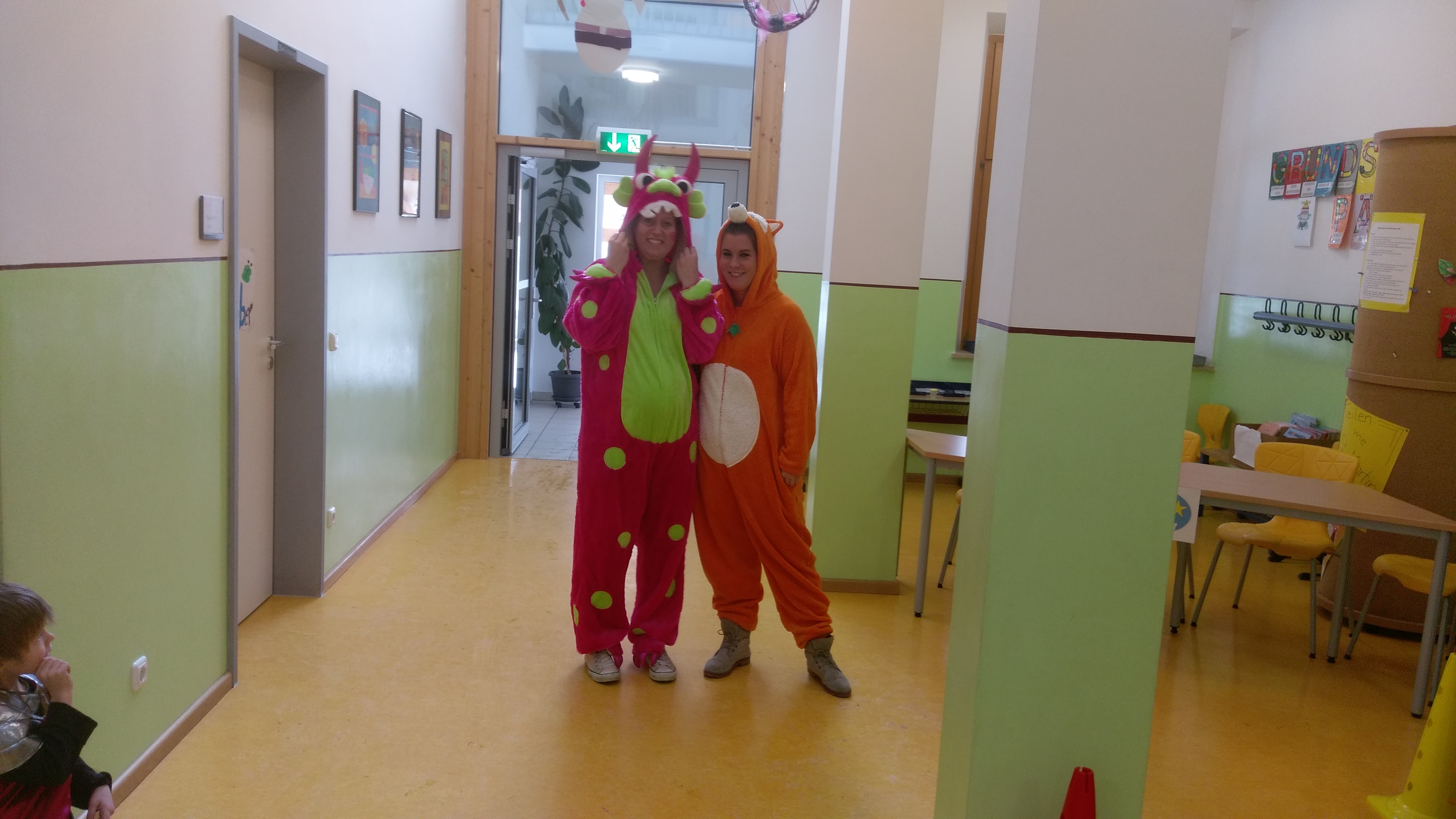 Der ein oder andere war an diesem Tag sicher verwundert, wer in unserer Schule so ein- und ausgeht. Cowboys, Prinzessinnen, Polizisten, Feen, Indianer, Vampire…..und nicht zuletzt sogar Dieter B. und Heidi K. Diese beiden nahmen sogar persönöich die Maskenprämierung vor. Es gewann ein Astronaut kurz vor Kleopatra und dem Fliegenpilz. Abschluss der gemeinsamen Feier war eine Pollonaise durch das ganze Schulhaus, angeführt von einem Fuchs. (s. Bild unten). Danach ging es noch in den Klassen mit Spiel und Spaß rund.