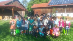 Da in diesem Herbst die Apfelernte so reichhaltig ausfiel, halfen im Dorf alle Schüler fleißig mit. Sie konnten zwei riesige Behälter füllen und bekamen zur Belohnung 220  Liter Apfelsaft.