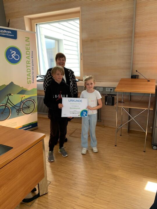 Schulradeln 2025 Veröffentlicht 17. Juli 2025 Sehr gefreut haben wir uns über den Sonderpreis für 6892 erradelte Kilometer, der uns am 11.07.2025 von der Landrätin Frau Jochner-Weiß bei einer feierlichen Zeremonie überreicht wurde. Kategorien:Allgemein vorheriger Beitrag Unser Sommerfest nächster Beitrag RESPEKT…