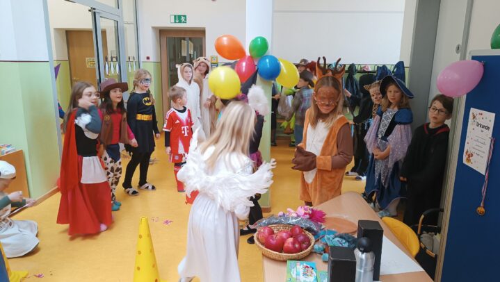 Wir feiern Fasching Veröffentlicht 24. Februar 2026 In die Faschingsferien starteten wir mit einer Schulfaschingsparty. Gute Laune, Tanz und Musik, die Prämierung der schönsten Kostüme und zum Abschluss leckere Krapfen, schön war`s. Vielen Dank an den Elternbeirat für die Krapfen. Kategorien:Allgemein vorheriger Beitrag Besuch vom Zahnarzt Keine neueren Beiträge Zurück zum Blog